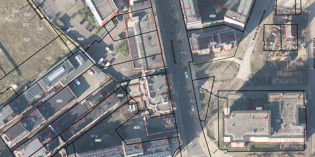 Het perceel waarop Stationsstraat 31-D staat heeft een oppervlakte van 586 m². Dit is een groot perceel. De perceeloppervlakte wordt geregistreerd door het Kadaster. Gedetailleerde informatie over de maten van dit perceel kunt u vinden in het rapport Kadastrale kaart met maatvoering van Stationsstraat 31-D.