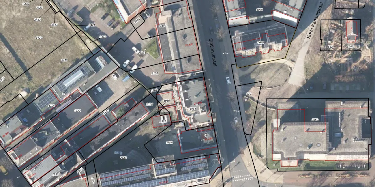 Het perceel waarop Stationsstraat 35-B staat heeft een oppervlakte van 586 m². Dit is een groot perceel. De perceeloppervlakte wordt geregistreerd door het Kadaster. Gedetailleerde informatie over de maten van dit perceel kunt u vinden in het rapport Kadastrale kaart met maatvoering van Stationsstraat 35-B.