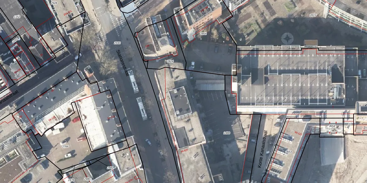 Het perceel waarop Stationsstraat 78-F staat heeft een oppervlakte van 2911 m². Dit is een zeer groot perceel. De perceeloppervlakte wordt geregistreerd door het Kadaster. Gedetailleerde informatie over de maten van dit perceel kunt u vinden in het rapport Kadastrale kaart met maatvoering van Stationsstraat 78-F.