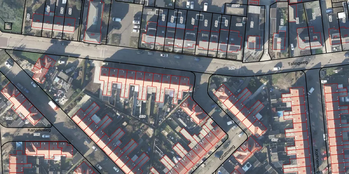 Talingweg 112 is gelegen op kadastraal perceel APD01N3576. Deze kadastrale aanduiding is uniek en wordt gebruikt door het Kadaster om eigendomsrechten en andere zakelijke rechten vast te leggen. Het perceel maakt onderdeel uit van de kadastrale gemeente Apeldoorn.