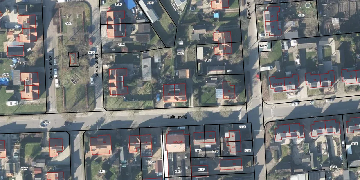 Talingweg 13 is gelegen op kadastraal perceel APD01N9592. Deze kadastrale aanduiding is uniek en wordt gebruikt door het Kadaster om eigendomsrechten en andere zakelijke rechten vast te leggen. Het perceel maakt onderdeel uit van de kadastrale gemeente Apeldoorn.