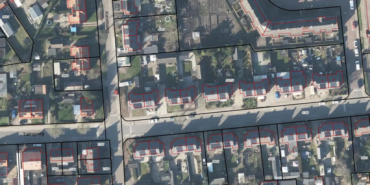 Het perceel waarop Talingweg 23 staat heeft een oppervlakte van 4049 m². Dit is een zeer groot perceel. De perceeloppervlakte wordt geregistreerd door het Kadaster. Gedetailleerde informatie over de maten van dit perceel kunt u vinden in het rapport Kadastrale kaart met maatvoering van Talingweg 23.
