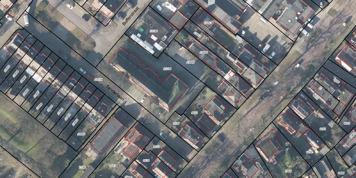 Het perceel waarop Tenderlaan 2 staat heeft een oppervlakte van 1516 m². Dit is een zeer groot perceel. De perceeloppervlakte wordt geregistreerd door het Kadaster. Gedetailleerde informatie over de maten van dit perceel kunt u vinden in het rapport Kadastrale kaart met maatvoering van Tenderlaan 2.