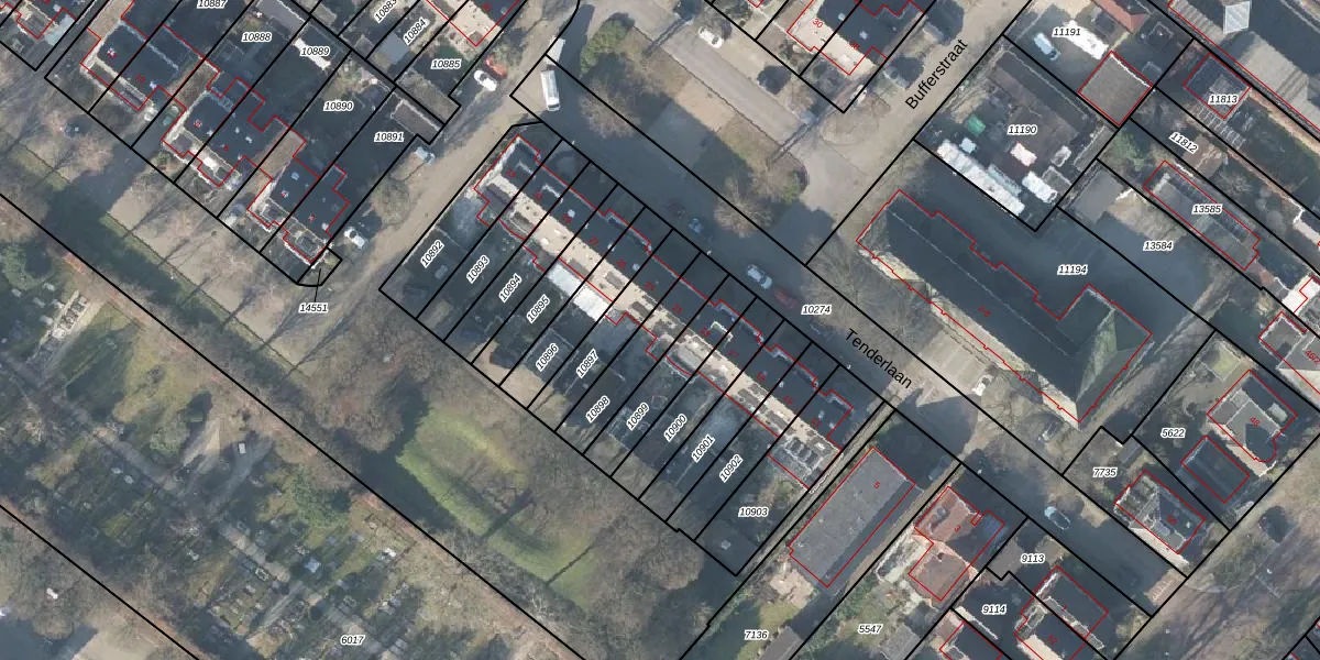 Gebruik de zoekbalk of klik op een perceel voor informatie over de adressen binnen dit perceel.