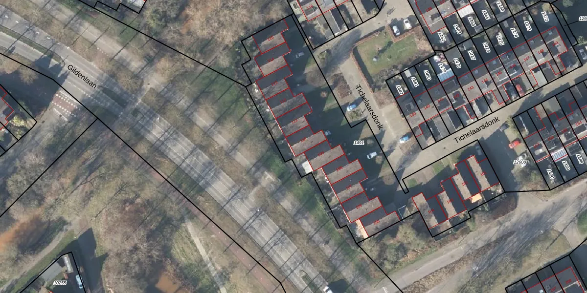 Het perceel waarop Tichelaarsdonk 110 staat heeft een oppervlakte van 2580 m². Dit is een zeer groot perceel. De perceeloppervlakte wordt geregistreerd door het Kadaster. Gedetailleerde informatie over de maten van dit perceel kunt u vinden in het rapport Kadastrale kaart met maatvoering van Tichelaarsdonk 110.