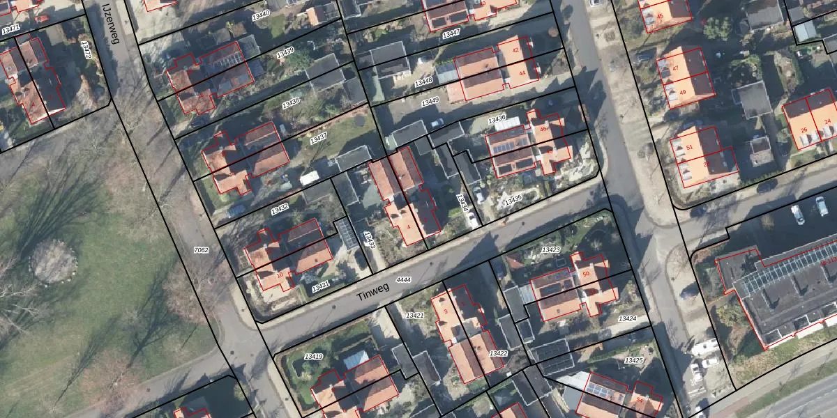 Gebruik de zoekbalk of klik op een perceel voor informatie over de adressen binnen dit perceel.