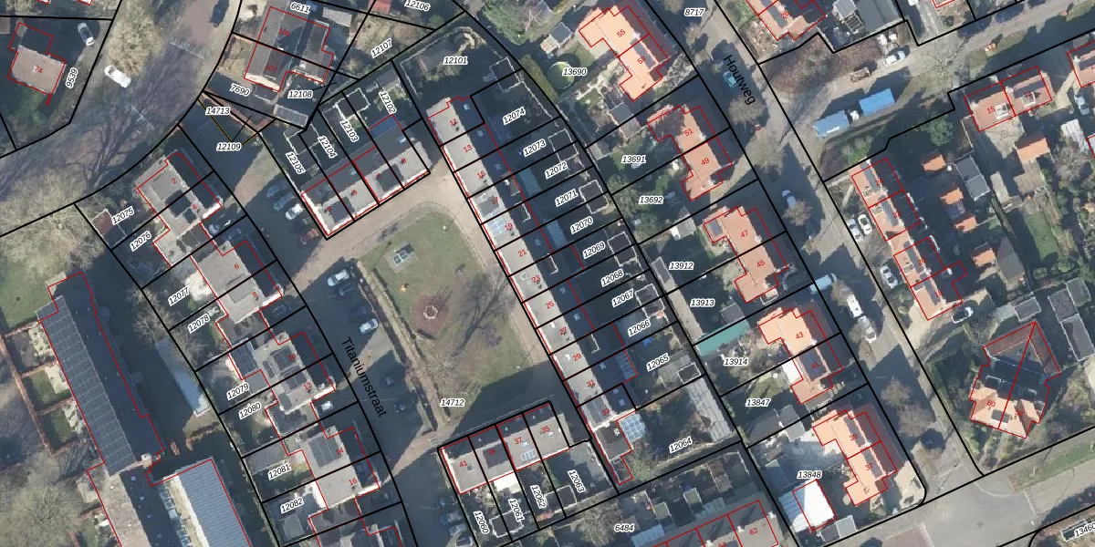 Gebruik de zoekbalk of klik op een perceel voor informatie over de adressen binnen dit perceel.