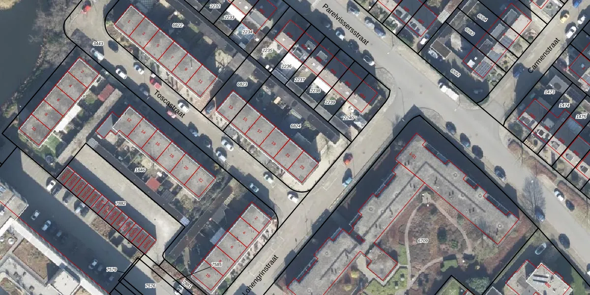 Het perceel waarop Toscastraat 21 staat heeft een oppervlakte van 900 m². Dit is een groot perceel. De perceeloppervlakte wordt geregistreerd door het Kadaster. Gedetailleerde informatie over de maten van dit perceel kunt u vinden in het rapport Kadastrale kaart met maatvoering van Toscastraat 21.
