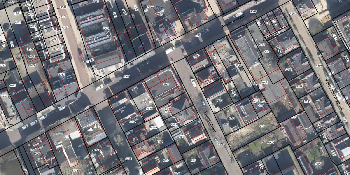 Het perceel waarop Trompstraat 2-A staat heeft een oppervlakte van 348 m². Dit is een groot perceel. De perceeloppervlakte wordt geregistreerd door het Kadaster. Gedetailleerde informatie over de maten van dit perceel kunt u vinden in het rapport Kadastrale kaart met maatvoering van Trompstraat 2-A.