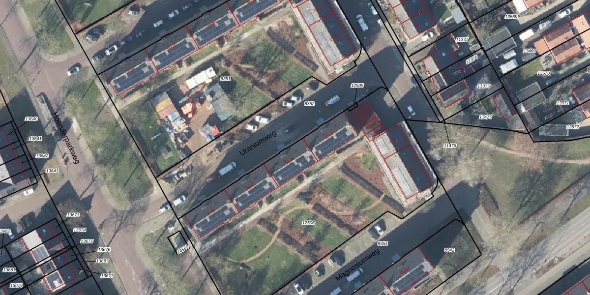 Het perceel waarop Uraniumweg 36 staat heeft een oppervlakte van 3230 m². Dit is een zeer groot perceel. De perceeloppervlakte wordt geregistreerd door het Kadaster. Gedetailleerde informatie over de maten van dit perceel kunt u vinden in het rapport Kadastrale kaart met maatvoering van Uraniumweg 36.