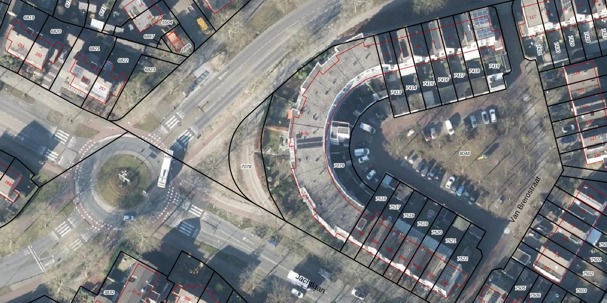 Het perceel waarop Van Brerostraat 58 staat heeft een oppervlakte van 1865 m². Dit is een zeer groot perceel. De perceeloppervlakte wordt geregistreerd door het Kadaster. Gedetailleerde informatie over de maten van dit perceel kunt u vinden in het rapport Kadastrale kaart met maatvoering van Van Brerostraat 58.