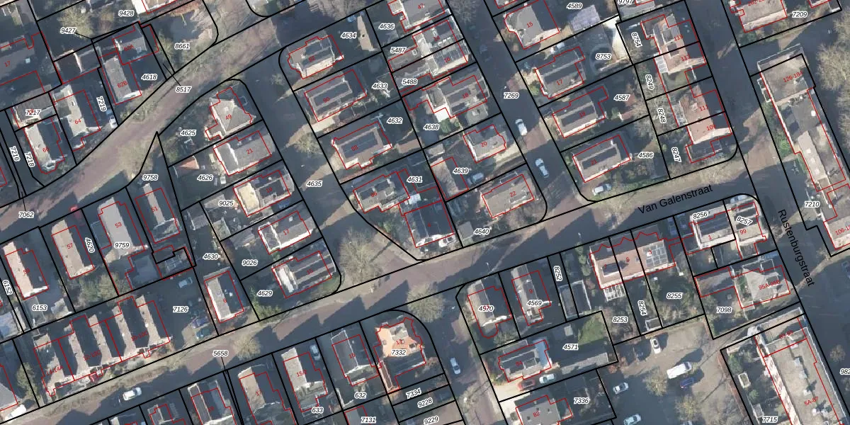 Het perceel waarop Van Galenstraat 4 staat heeft een oppervlakte van 420 m². Dit is een groot perceel. De perceeloppervlakte wordt geregistreerd door het Kadaster. Gedetailleerde informatie over de maten van dit perceel kunt u vinden in het rapport Kadastrale kaart met maatvoering van Van Galenstraat 4.
