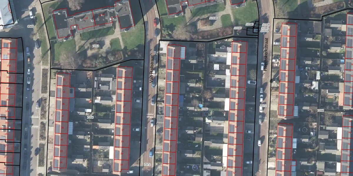 Het perceel waarop Van Hallstraat 7 staat heeft een oppervlakte van 5914 m². Dit is een zeer groot perceel. De perceeloppervlakte wordt geregistreerd door het Kadaster. Gedetailleerde informatie over de maten van dit perceel kunt u vinden in het rapport Kadastrale kaart met maatvoering van Van Hallstraat 7.