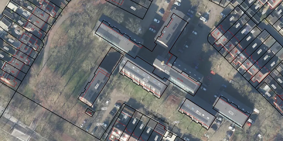 Het perceel waarop Viltmakersdonk 127 staat heeft een oppervlakte van 349 m². Dit is een groot perceel. De perceeloppervlakte wordt geregistreerd door het Kadaster. Gedetailleerde informatie over de maten van dit perceel kunt u vinden in het rapport Kadastrale kaart met maatvoering van Viltmakersdonk 127.