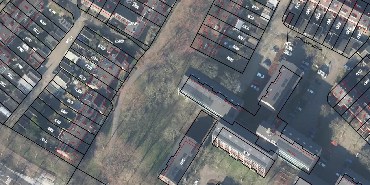 Het perceel waarop Viltmakersdonk 132 staat heeft een oppervlakte van 1240 m². Dit is een zeer groot perceel. De perceeloppervlakte wordt geregistreerd door het Kadaster. Gedetailleerde informatie over de maten van dit perceel kunt u vinden in het rapport Kadastrale kaart met maatvoering van Viltmakersdonk 132.