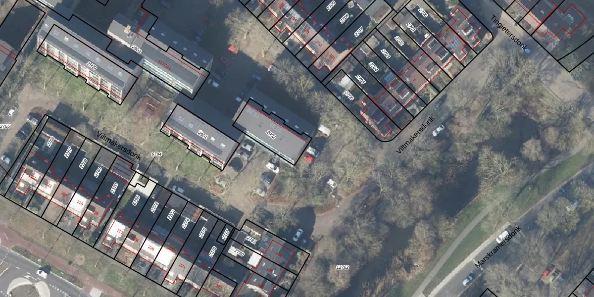 Het perceel waarop Viltmakersdonk 164 staat heeft een oppervlakte van 258 m². Dit is een middelgroot perceel. De perceeloppervlakte wordt geregistreerd door het Kadaster. Gedetailleerde informatie over de maten van dit perceel kunt u vinden in het rapport Kadastrale kaart met maatvoering van Viltmakersdonk 164.