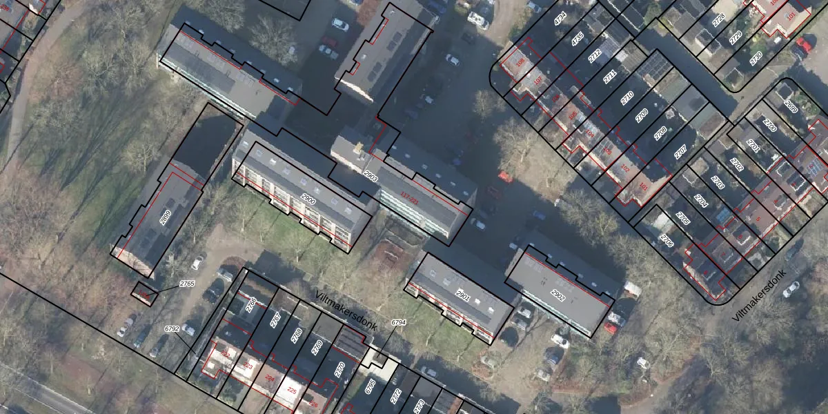 Het perceel waarop Viltmakersdonk 171 staat heeft een oppervlakte van 1240 m². Dit is een zeer groot perceel. De perceeloppervlakte wordt geregistreerd door het Kadaster. Gedetailleerde informatie over de maten van dit perceel kunt u vinden in het rapport Kadastrale kaart met maatvoering van Viltmakersdonk 171.