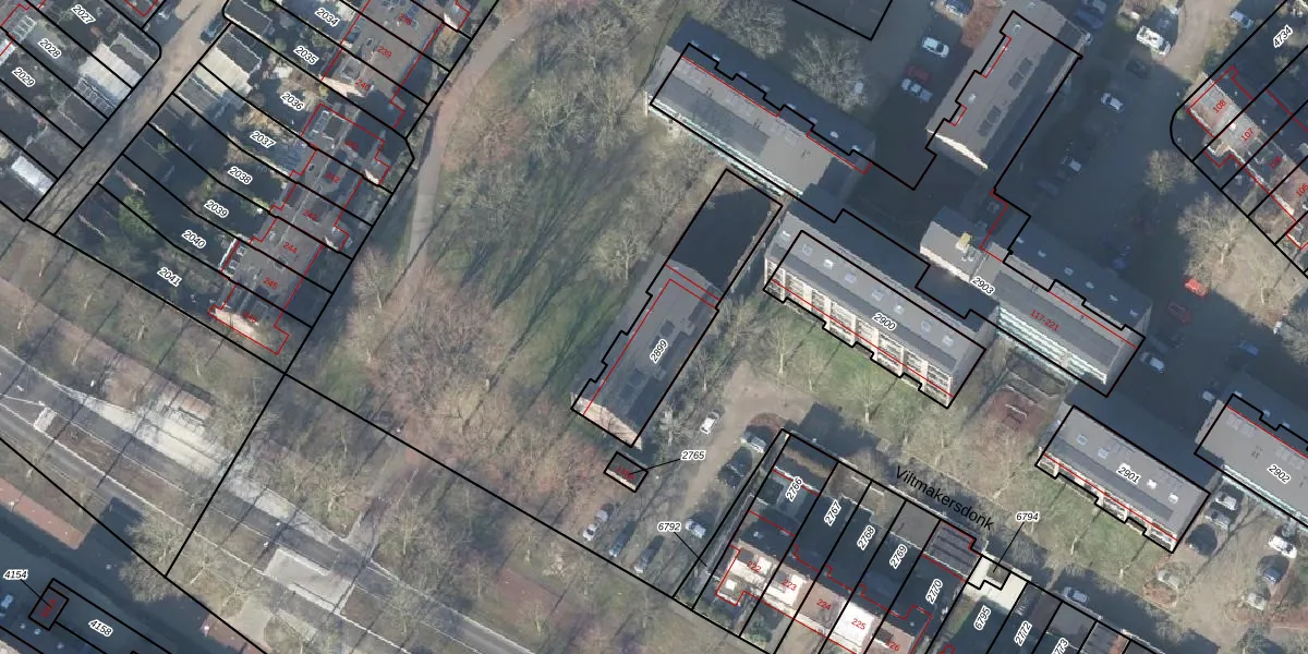 Het perceel waarop Viltmakersdonk 182 staat heeft een oppervlakte van 453 m². Dit is een groot perceel. De perceeloppervlakte wordt geregistreerd door het Kadaster. Gedetailleerde informatie over de maten van dit perceel kunt u vinden in het rapport Kadastrale kaart met maatvoering van Viltmakersdonk 182.