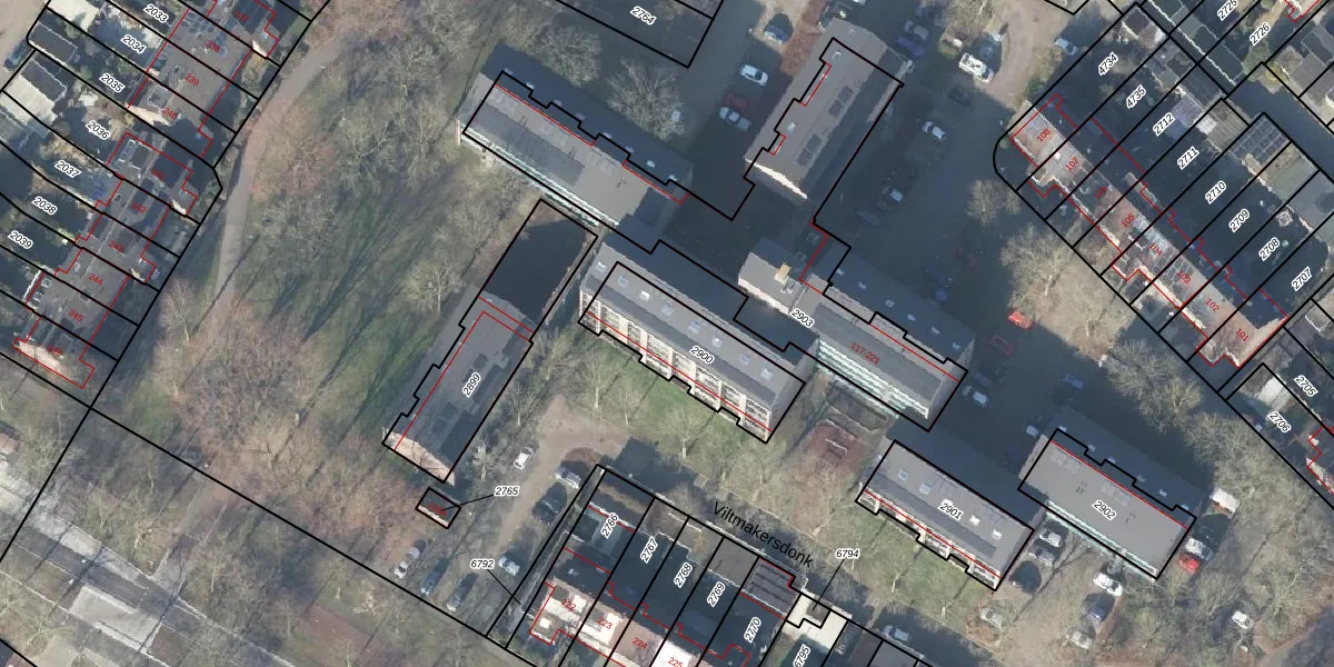 Het perceel waarop Viltmakersdonk 201 staat heeft een oppervlakte van 349 m². Dit is een groot perceel. De perceeloppervlakte wordt geregistreerd door het Kadaster. Gedetailleerde informatie over de maten van dit perceel kunt u vinden in het rapport Kadastrale kaart met maatvoering van Viltmakersdonk 201.