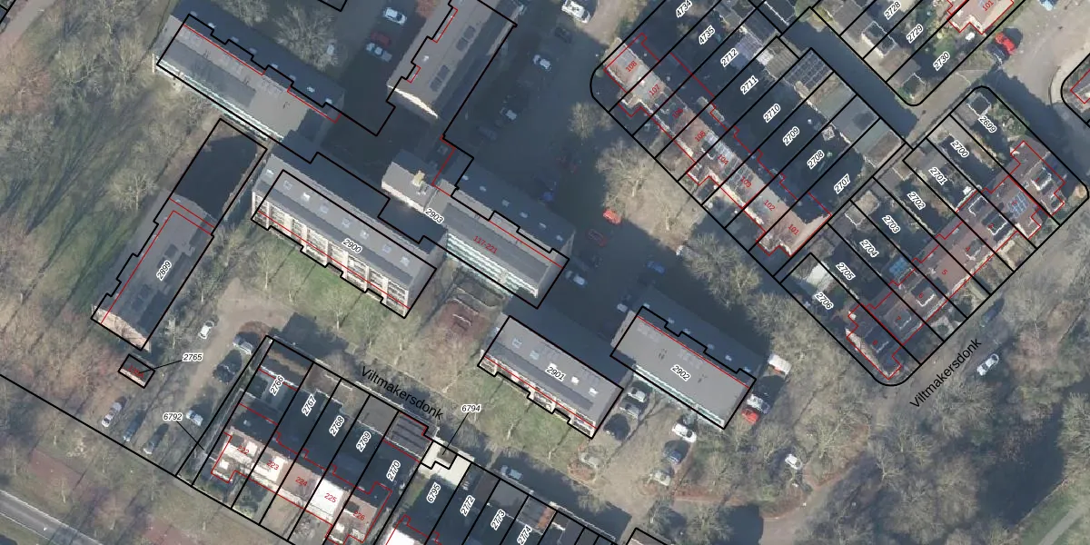 Het perceel waarop Viltmakersdonk 208 staat heeft een oppervlakte van 1240 m². Dit is een zeer groot perceel. De perceeloppervlakte wordt geregistreerd door het Kadaster. Gedetailleerde informatie over de maten van dit perceel kunt u vinden in het rapport Kadastrale kaart met maatvoering van Viltmakersdonk 208.