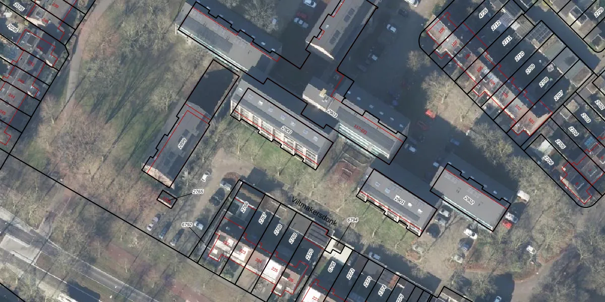 Het perceel waarop Viltmakersdonk 218-A staat heeft een oppervlakte van 349 m². Dit is een groot perceel. De perceeloppervlakte wordt geregistreerd door het Kadaster. Gedetailleerde informatie over de maten van dit perceel kunt u vinden in het rapport Kadastrale kaart met maatvoering van Viltmakersdonk 218-A.