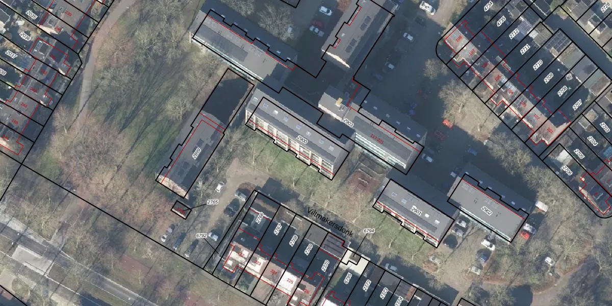 Het perceel waarop Viltmakersdonk 219 staat heeft een oppervlakte van 349 m². Dit is een groot perceel. De perceeloppervlakte wordt geregistreerd door het Kadaster. Gedetailleerde informatie over de maten van dit perceel kunt u vinden in het rapport Kadastrale kaart met maatvoering van Viltmakersdonk 219.