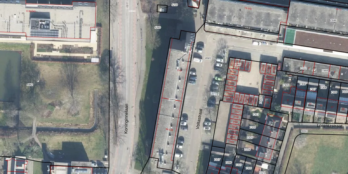 Het perceel waarop Voltastraat 25 staat heeft een oppervlakte van 1043 m². Dit is een zeer groot perceel. De perceeloppervlakte wordt geregistreerd door het Kadaster. Gedetailleerde informatie over de maten van dit perceel kunt u vinden in het rapport Kadastrale kaart met maatvoering van Voltastraat 25.