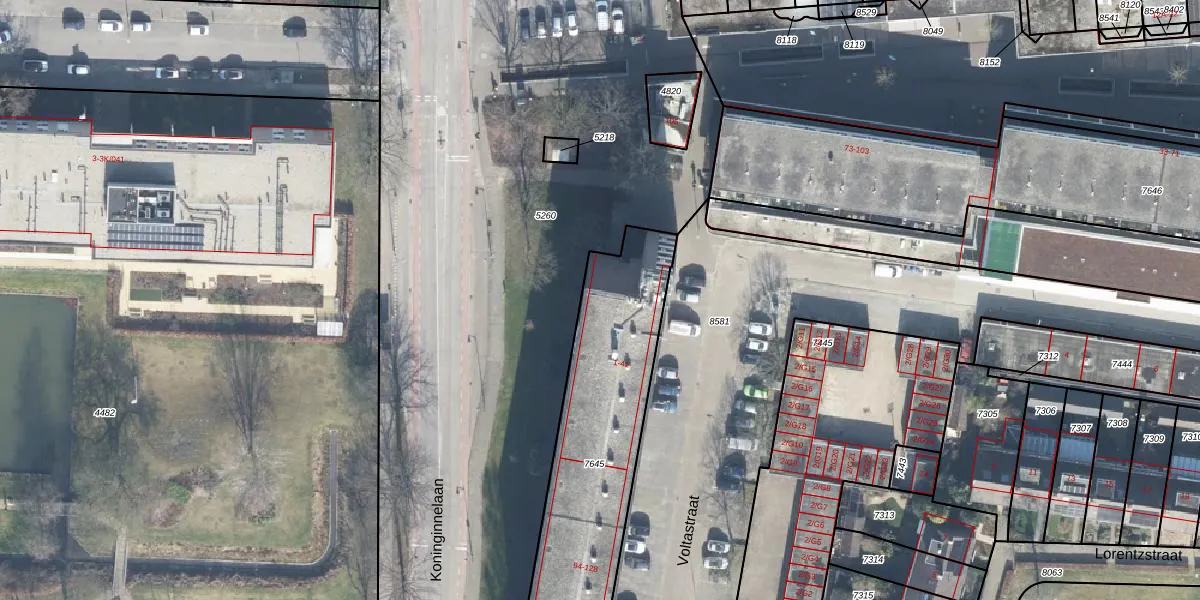 Het perceel waarop Voltastraat 31 staat heeft een oppervlakte van 1043 m². Dit is een zeer groot perceel. De perceeloppervlakte wordt geregistreerd door het Kadaster. Gedetailleerde informatie over de maten van dit perceel kunt u vinden in het rapport Kadastrale kaart met maatvoering van Voltastraat 31.