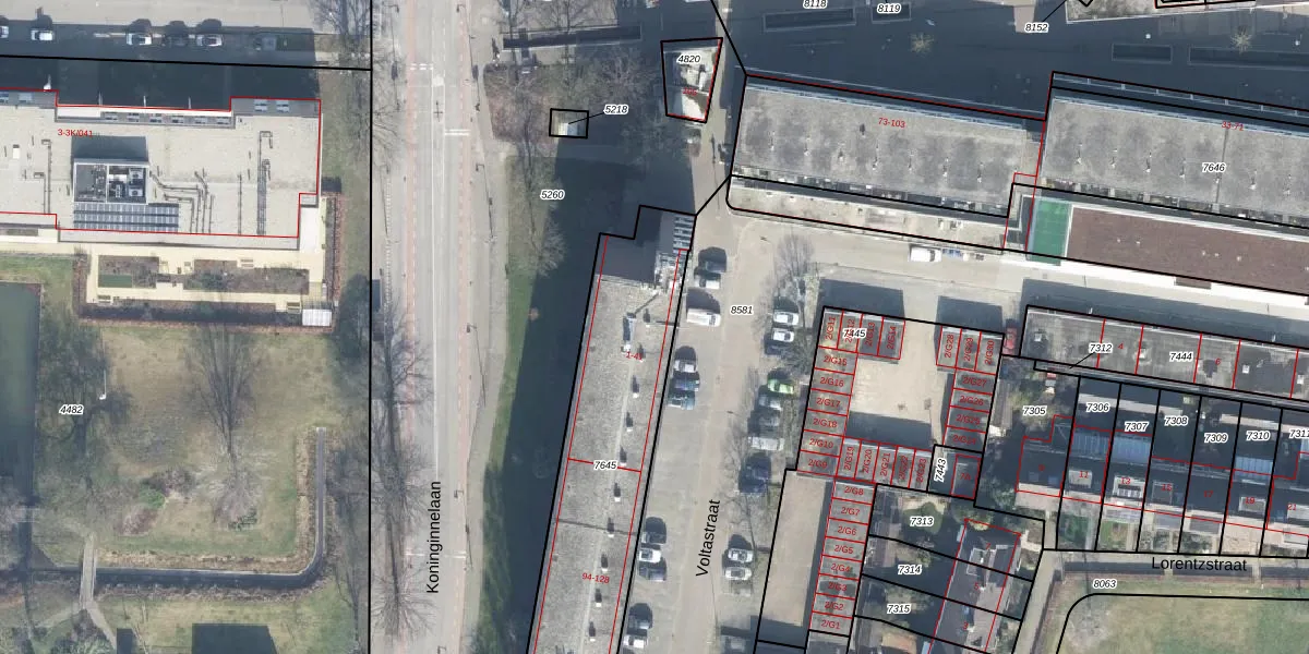 Het perceel waarop Voltastraat 5 staat heeft een oppervlakte van 1043 m². Dit is een zeer groot perceel. De perceeloppervlakte wordt geregistreerd door het Kadaster. Gedetailleerde informatie over de maten van dit perceel kunt u vinden in het rapport Kadastrale kaart met maatvoering van Voltastraat 5.