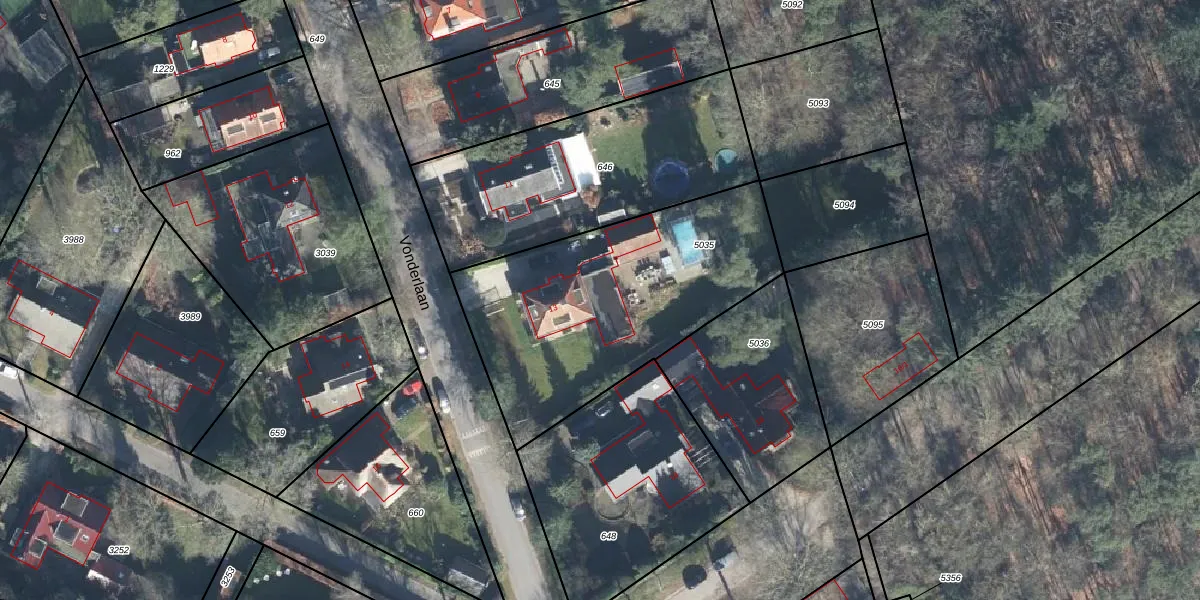 Vonderlaan 13 is gelegen op kadastraal perceel SRN00R5035. Deze kadastrale aanduiding is uniek en wordt gebruikt door het Kadaster om eigendomsrechten en andere zakelijke rechten vast te leggen. Het perceel maakt onderdeel uit van de kadastrale gemeente Hoog Soeren.