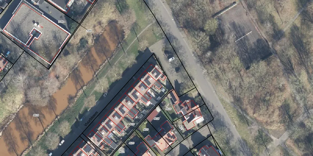Het perceel waarop Vuurbloem 1 staat heeft een oppervlakte van 1547 m². Dit is een zeer groot perceel. De perceeloppervlakte wordt geregistreerd door het Kadaster. Gedetailleerde informatie over de maten van dit perceel kunt u vinden in het rapport Kadastrale kaart met maatvoering van Vuurbloem 1.