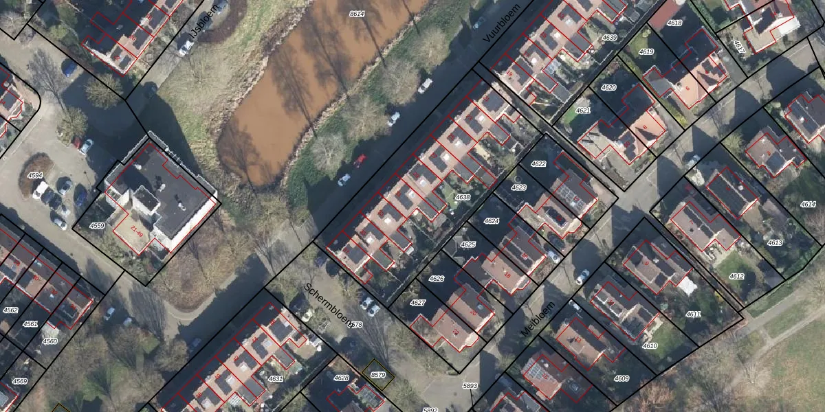 Het perceel waarop Vuurbloem 31 staat heeft een oppervlakte van 1370 m². Dit is een zeer groot perceel. De perceeloppervlakte wordt geregistreerd door het Kadaster. Gedetailleerde informatie over de maten van dit perceel kunt u vinden in het rapport Kadastrale kaart met maatvoering van Vuurbloem 31.