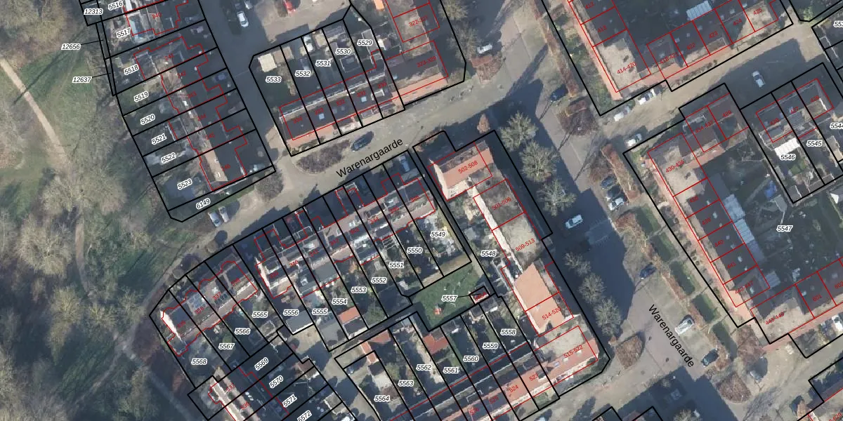 Gebruik de zoekbalk of klik op een perceel voor informatie over de adressen binnen dit perceel.