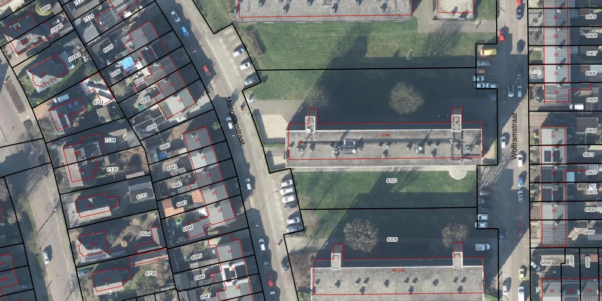 Het perceel waarop Wolframstraat 64 staat heeft een oppervlakte van 3395 m². Dit is een zeer groot perceel. De perceeloppervlakte wordt geregistreerd door het Kadaster. Gedetailleerde informatie over de maten van dit perceel kunt u vinden in het rapport Kadastrale kaart met maatvoering van Wolframstraat 64.