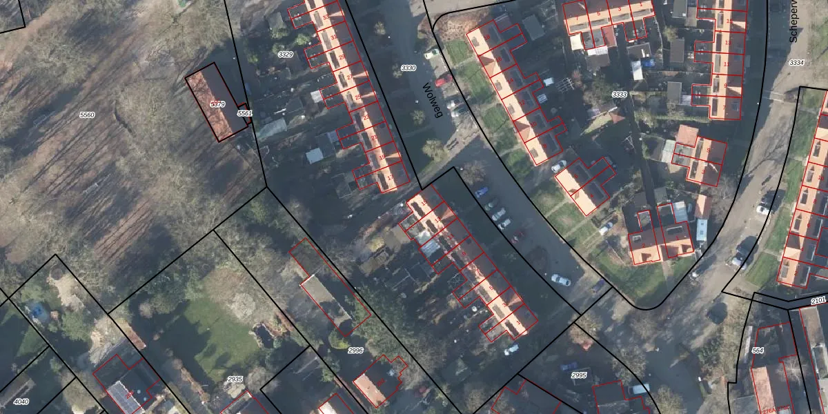 Wolweg 15 is gelegen op kadastraal perceel SRN00R3329. Deze kadastrale aanduiding is uniek en wordt gebruikt door het Kadaster om eigendomsrechten en andere zakelijke rechten vast te leggen. Het perceel maakt onderdeel uit van de kadastrale gemeente Hoog Soeren.