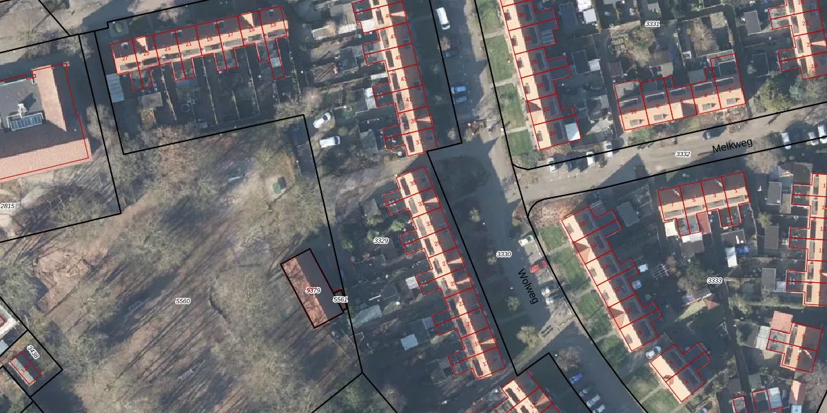 Het perceel waarop Wolweg 33 staat heeft een oppervlakte van 6872 m². Dit is een zeer groot perceel. De perceeloppervlakte wordt geregistreerd door het Kadaster. Gedetailleerde informatie over de maten van dit perceel kunt u vinden in het rapport Kadastrale kaart met maatvoering van Wolweg 33.
