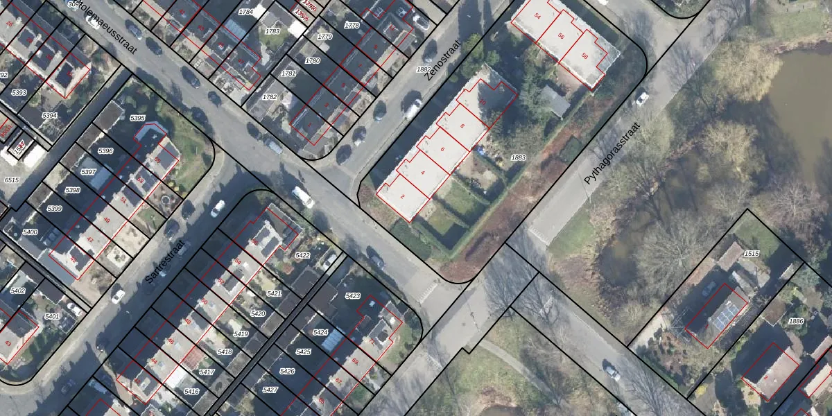 Het perceel waarop Zenostraat 2 staat heeft een oppervlakte van 2585 m². Dit is een zeer groot perceel. De perceeloppervlakte wordt geregistreerd door het Kadaster. Gedetailleerde informatie over de maten van dit perceel kunt u vinden in het rapport Kadastrale kaart met maatvoering van Zenostraat 2.