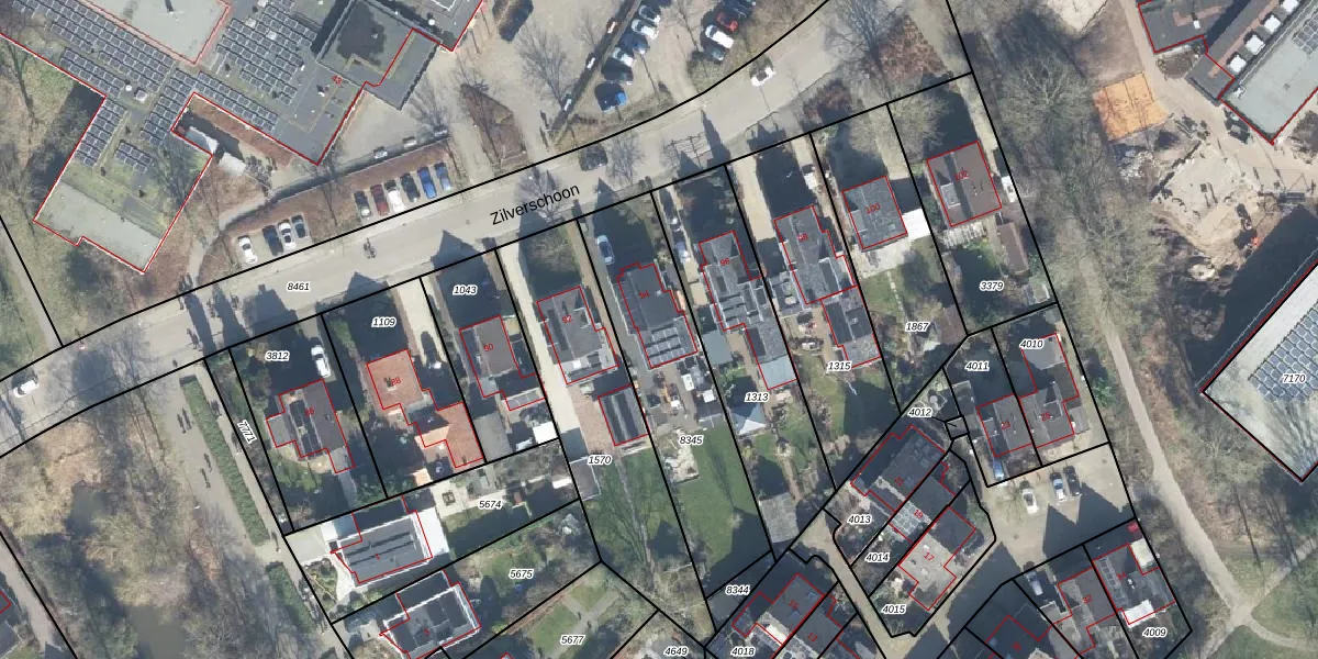 Het perceel waarop Zilverschoon 94 staat heeft een oppervlakte van 708 m². Dit is een groot perceel. De perceeloppervlakte wordt geregistreerd door het Kadaster. Gedetailleerde informatie over de maten van dit perceel kunt u vinden in het rapport Kadastrale kaart met maatvoering van Zilverschoon 94.