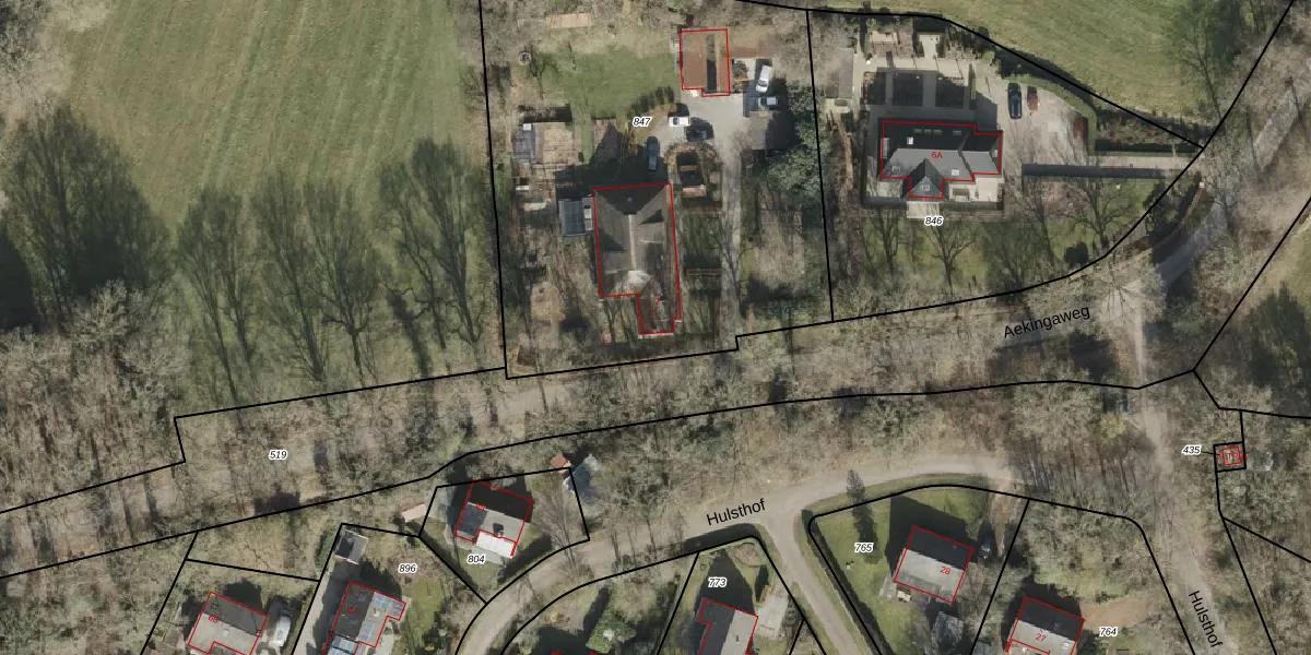 Het perceel waarop Aekingaweg 7 staat heeft een oppervlakte van 2835 m². Dit is een zeer groot perceel. De perceeloppervlakte wordt geregistreerd door het Kadaster. Gedetailleerde informatie over de maten van dit perceel kunt u vinden in het rapport Kadastrale kaart met maatvoering van Aekingaweg 7.