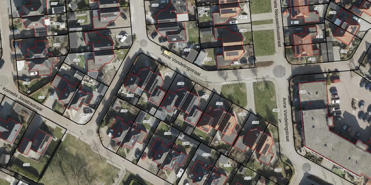 Het perceel waarop Anne Vondelingstraat 11 staat heeft een oppervlakte van 303 m². Dit is een groot perceel. De perceeloppervlakte wordt geregistreerd door het Kadaster. Gedetailleerde informatie over de maten van dit perceel kunt u vinden in het rapport Kadastrale kaart met maatvoering van Anne Vondelingstraat 11.