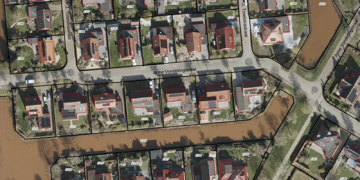 Het perceel waarop Anne Vondelingstraat 114 staat heeft een oppervlakte van 543 m². Dit is een groot perceel. De perceeloppervlakte wordt geregistreerd door het Kadaster. Gedetailleerde informatie over de maten van dit perceel kunt u vinden in het rapport Kadastrale kaart met maatvoering van Anne Vondelingstraat 114.