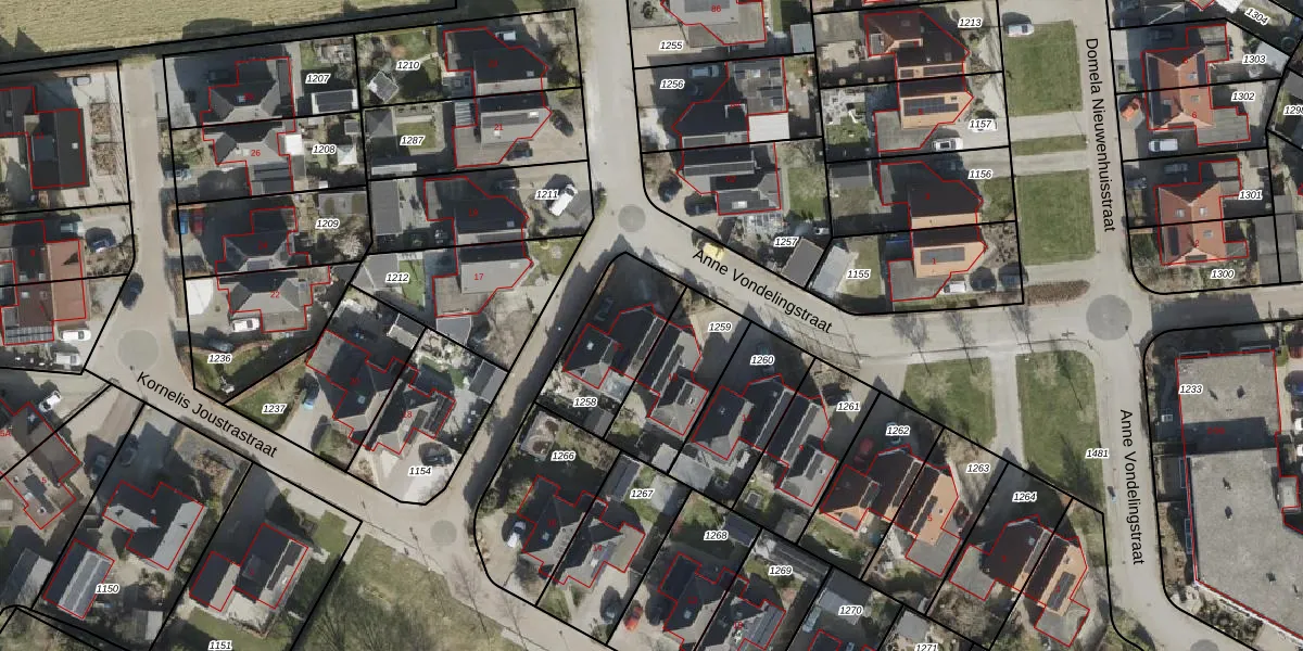 Het perceel waarop Anne Vondelingstraat 15 staat heeft een oppervlakte van 322 m². Dit is een groot perceel. De perceeloppervlakte wordt geregistreerd door het Kadaster. Gedetailleerde informatie over de maten van dit perceel kunt u vinden in het rapport Kadastrale kaart met maatvoering van Anne Vondelingstraat 15.