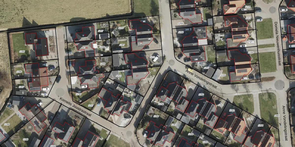 Het perceel waarop Anne Vondelingstraat 17 staat heeft een oppervlakte van 409 m². Dit is een groot perceel. De perceeloppervlakte wordt geregistreerd door het Kadaster. Gedetailleerde informatie over de maten van dit perceel kunt u vinden in het rapport Kadastrale kaart met maatvoering van Anne Vondelingstraat 17.