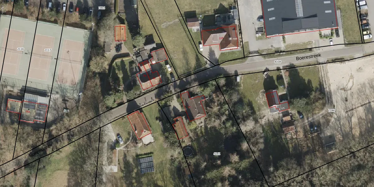 Het perceel waarop Boerestreek 16 staat heeft een oppervlakte van 2450 m². Dit is een zeer groot perceel. De perceeloppervlakte wordt geregistreerd door het Kadaster. Gedetailleerde informatie over de maten van dit perceel kunt u vinden in het rapport Kadastrale kaart met maatvoering van Boerestreek 16.