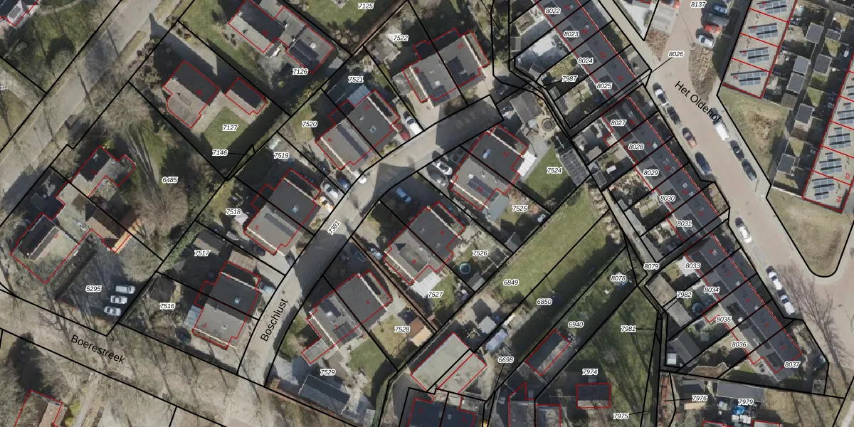 Het perceel waarop Boschlust 8 staat heeft een oppervlakte van 363 m². Dit is een groot perceel. De perceeloppervlakte wordt geregistreerd door het Kadaster. Gedetailleerde informatie over de maten van dit perceel kunt u vinden in het rapport Kadastrale kaart met maatvoering van Boschlust 8.