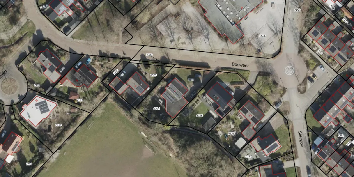 Het perceel waarop Bosweer 2 staat heeft een oppervlakte van 771 m². Dit is een groot perceel. De perceeloppervlakte wordt geregistreerd door het Kadaster. Gedetailleerde informatie over de maten van dit perceel kunt u vinden in het rapport Kadastrale kaart met maatvoering van Bosweer 2.