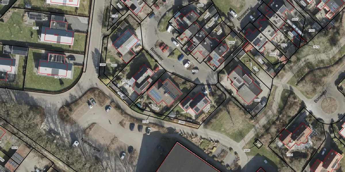 Het perceel waarop Bosweer 24 staat heeft een oppervlakte van 499 m². Dit is een groot perceel. De perceeloppervlakte wordt geregistreerd door het Kadaster. Gedetailleerde informatie over de maten van dit perceel kunt u vinden in het rapport Kadastrale kaart met maatvoering van Bosweer 24.