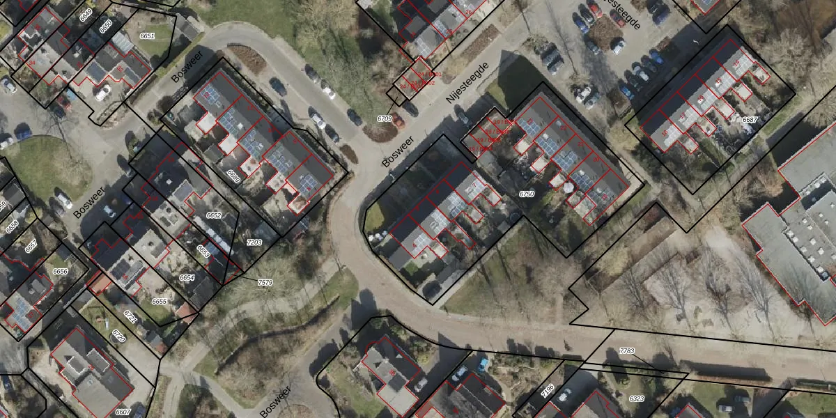 Het perceel waarop Bosweer 5 staat heeft een oppervlakte van 1772 m². Dit is een zeer groot perceel. De perceeloppervlakte wordt geregistreerd door het Kadaster. Gedetailleerde informatie over de maten van dit perceel kunt u vinden in het rapport Kadastrale kaart met maatvoering van Bosweer 5.