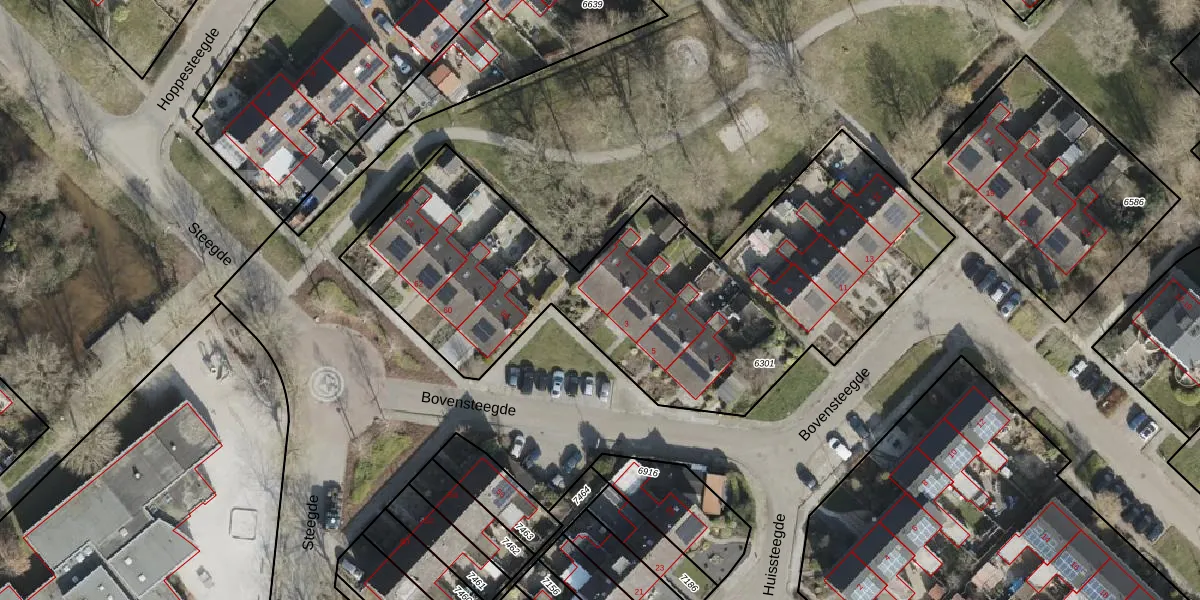 Het perceel waarop Bovensteegde 1 staat heeft een oppervlakte van 2419 m². Dit is een zeer groot perceel. De perceeloppervlakte wordt geregistreerd door het Kadaster. Gedetailleerde informatie over de maten van dit perceel kunt u vinden in het rapport Kadastrale kaart met maatvoering van Bovensteegde 1.