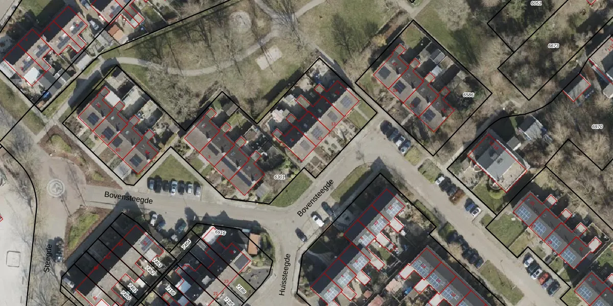 Het perceel waarop Bovensteegde 9 staat heeft een oppervlakte van 2419 m². Dit is een zeer groot perceel. De perceeloppervlakte wordt geregistreerd door het Kadaster. Gedetailleerde informatie over de maten van dit perceel kunt u vinden in het rapport Kadastrale kaart met maatvoering van Bovensteegde 9.